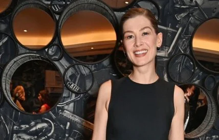 Ця подія не була помпезною. Розамунд, яка зіграла у стрічці одну з ключових ролей, обрала стильне вбрання від Модного дому Dior, а саме чорну однотонну сукню-міді без рукавів. Високі шкіряні рукавички додали неабиякої елегантності образу, а пояс із золотистою пряжкою на талії підкреслив стрункі форми жінки.