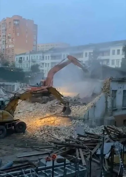 Министерство культуры запрещало снос здания, но застройщика это не остановило. Согласно сообщению активистов — работы охраняли титушки.