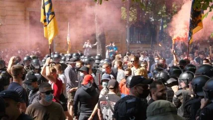 Правоохранители сообщили о подозрении двум участникам акции "Нацкорпуса", которая прошла 14 августа возле Офиса президента.