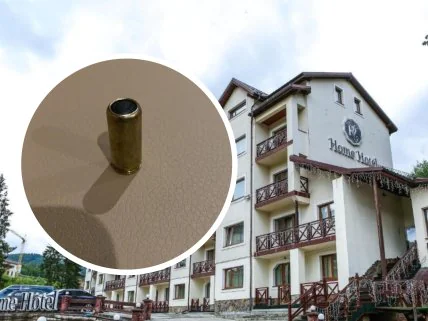 Видео из отеля Home Hotel выложил Константин Рябченко. Он заснял двух мужчин, которые пытаются выстрелить из предмета, похожего на короткоствольный пистолет, но у них не выходит — оружие дает осечку за осечкой.