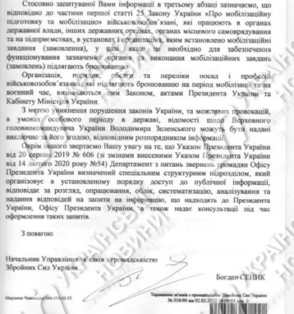 Что касается самого Зеленского, то в Генштабе отказались сообщать информацию о том, состоит ли он на воинском учете, ради избежания "нарушений законов и возможных провокаций". Там также указали, что подобная информация может быть разглашена только в случае персонального согласия Зеленского.