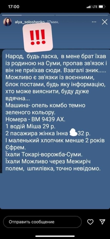 "Автомобиль, в котором ехала семья с маленьким ребёнком, был расстрелян российским танком!", — говорится в сообщении.