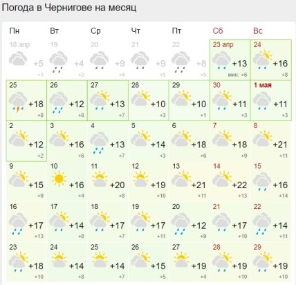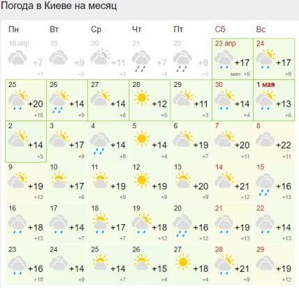 26 апреля грозы тоже будут все еще наблюдаться в северных и западных областях, туда же придет ощутимое похолодание до +14…+17 градусов.