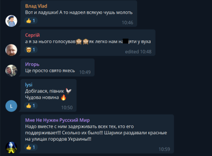 "Надоел всякую чушь молоть", "А я за него голосовал. Как легко нам в уши нас**ть", "Это просто праздник какой-то", "Набегался, петушок", "Держим кулачки за быструю экстрадицию Шария", — среди прочего, также написали в комментариях.