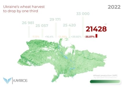 "Есть международная контора уровня "боженьки" (Kayrros), которая использует искусственный интеллект и анализирует с его помощью спутниковые снимки, в том числе украинских полей. В пятницу они опубликовали отчет, но я не хотела портить вам выходные. Согласно этому отчету, урожай пшеницы в Украине будет как минимум на 35% ниже, чем в прошлом году. Раньше самый пессимистичный прогноз падения составлял 20% (такую цифру называл Рабобанк и ФАО). То есть или ситуация ухудшается или просто мы на старте были в счастливом неведеньи", — пишет эксперт.