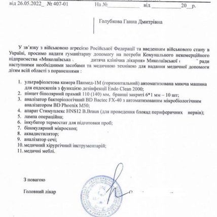 Помощь детям с горячих точек: волонтеры собирают средства на покупку оборудования больнице в Николаеве