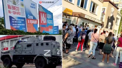 Также оккупационные власти активно готовятся к "референдуму" — по всему городу развешены плакаты со словами о якобы свободе выбора местных жителей.