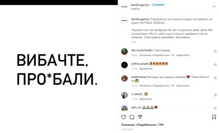 А Banda Agency дополнила свой разгром еще одним дополнительным сообщением о том, что оригинальный пост с призывом показывать непристойный жест пришлось удалить, потому что об этом попросили некоторые звезды, которым не понравился неожиданный подтекст. "Мы бы и себя из этого всего убрали, но не можем. Поэтому будем выгребать. Заслуженно", — написали в агентстве.