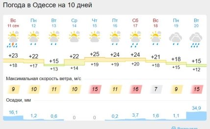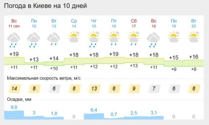 Согласно его прогнозу, сегодня, 11 сентября, следует ждать ухудшение погодных условий. Пройдут дожди, местами интенсивные, которые распространятся на большую часть Правобережья, а также местами центральные и северные регионы страны. В отдельных районах может выпасть более месячной нормы осадков. В основном, это касается западных и северных областей.