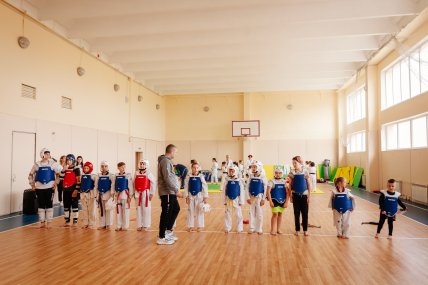 Представители Фонда встретились с директором Гостомельского лицея №1 Владимиром Захлюпаным, посетили тренировки школьников по каратэ, тхэквондо и волейболу и передали заведению спортивное оборудование для занятий разными видами спорта. А именно боксерские груши, тренажеры, маты, инвентарь для боевых видов искусств и художественной гимнастики, инвентарь для фитнеса, теннисный стол, а также спортивный инвентарь и развивающие детские игры.