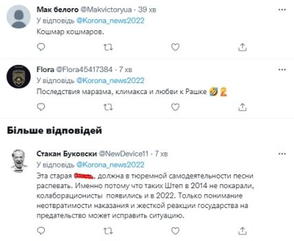 Стоит отметить, что в сети об одиозной Неле Штепе упомянули на фоне новостей о том, что ВСУ активно освобождают территории в Харьковской области и задерживают там коллаборантов. Многие задали вопрос: "А где любительница "народа Донбасса" Неля Штепа?". Примечательно, что она с момента российского вторжения в Украину затихла и не высказывала свою позицию по поводу войны. На ее Facebook-странице также отсутствуют какие-либо публикации по этому поводу, зато теперь появился эпатажный клип, не слишком понравившийся украинцам.