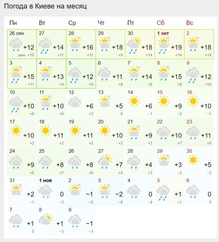 Так, в столице сравнительно теплая погода продержится до 23-го октября.