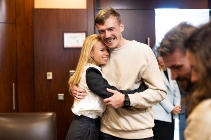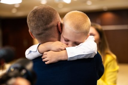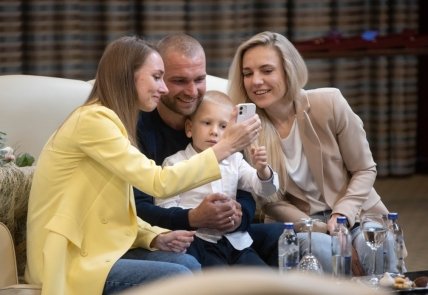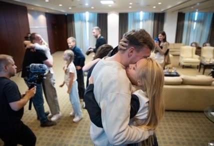 Фотографиями воссоединения семей поделилась пресс-служба Офиса президента. Как сообщается, речь идет о командире полка Национальной гвардии "Азов" Денисе Прокопенко (Редис), его заместителе Святославе Паламаре, и.о. командира 36-й отдельной бригады морской пехоты Сергее Волынском (Волина), старшем офицере "Азова" Олеге Хоменко и командире 12-й бригады НГУ Денисе Шлеге.
