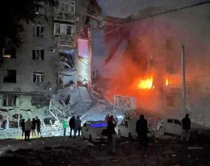 "Снова разрушен целый подъезд. В доме возник пожар. На месте работают соответствующие службы, тушащие огонь. К сожалению, есть пострадавшие", — отметил он в сообщении.