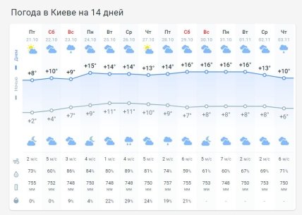 "Не переживайте – с завтрашнего дня потеплеет. Не так, чтобы +20, однако в западных областях и на юге максимальная температура воздуха будет +10+14 градусов, на остальной территории будет +8+12 градусов. Ночью холодно, правда, но ведь – середина осени, ожидается от 2 мороза до 4 тепла", — пишет она.
