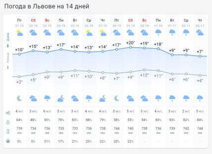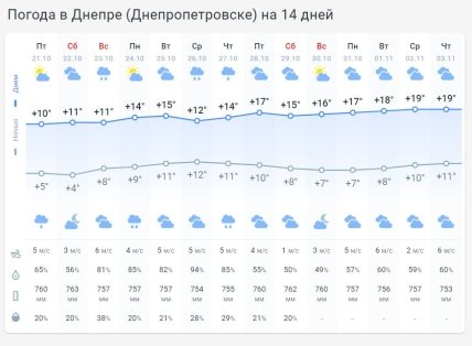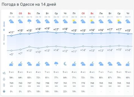 "Уже со следующей недели в Украину снова вернется теплая и преимущественно сухая погода, которая задержится как минимум до конца октября. Температура воздуха повысится до 15-19°, а на юге днем даже до 21°. Потеплеют также и ночи — температурный режим ночью будет колебаться в пределах 5-10°, на севере 3-7° тепла", — пишет Стас Щедрин.