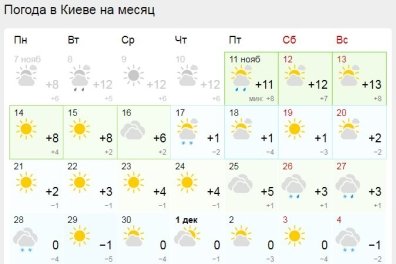 Наиболее прохладно будет в восточной части Украины, там столбики термометра начнут падать уже после понедельник. Ночные морозы в этих областях будут местами достигать -8 градусов, хотя к концу месяца там станет на пару градусов теплее.