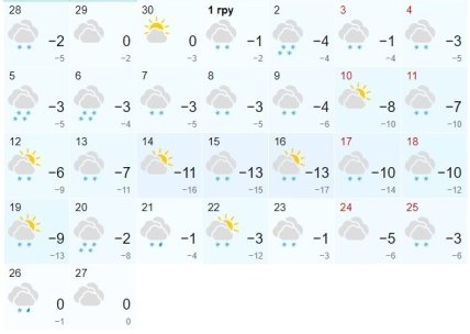 В то же время, по данным сервиса Gismeteo, в декабре украинцев ждет много снежных дней. Будут дни также и с метелями и суровыми морозами. Во второй декаде месяца столбик термометра может опускаться до -10 градусов днем и до -15 — ночью. Синоптики успокаивают, утверждая, что похолодание не продлится долго. В целом декабрь ожидается умеренно прохладным со средней температурой –5 градусов. Ближе к Новому году ожидается оттепель.
