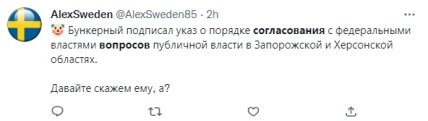 Как показала практика, указы путина на оккупированных территориях Украины имеют совсем небольшой "срок годности". Так, например, указ кремлевского диктатора о присоединении Херсона бойцы ВСУ смогли "обнулить" менее чем за полтора месяца. Тем не менее путин продолжает делать вид, что владеет ситуацией и издает всё новые и новые указы.