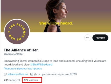 На странице организации указано, что она помогает женщинам в Европе реализовывать их политические амбиции и разрушать барьеры на их пути.