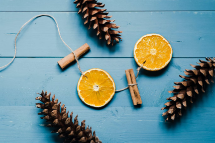 Интересным вариантом является праздничная гирлянда из сушеных ломтиков апельсинов и палочек корицы. Это очень простое украшение, которое можно сделать своими руками, наполнит ваш дом запахом Рождества в скандинавском стиле.