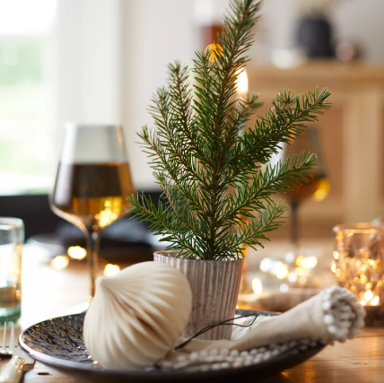 Создайте волшебную праздничную атмосферу, украсив стол мини-елками. Вы можете создать этот эффект, сделав самодельные мини-деревья. Просто возьмите обрезки веток от настоящей ели и поместите их в стакан. Если у вас настоящее дерево как главное, вы можете легко срезать ветки сзади. Добавьте еще один штрих индивидуальности, надев "деревья" в безделушки, которые иначе теряются на большом дереве.
