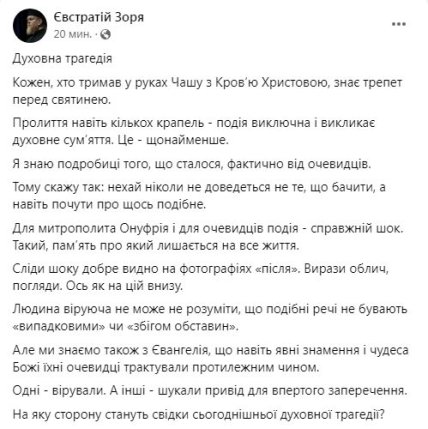 В свою очередь епископ ПЦУ Евстратий (Зоря) отметил, что это событие имеет исключительную важность и назвал его "духовной катастрофой".