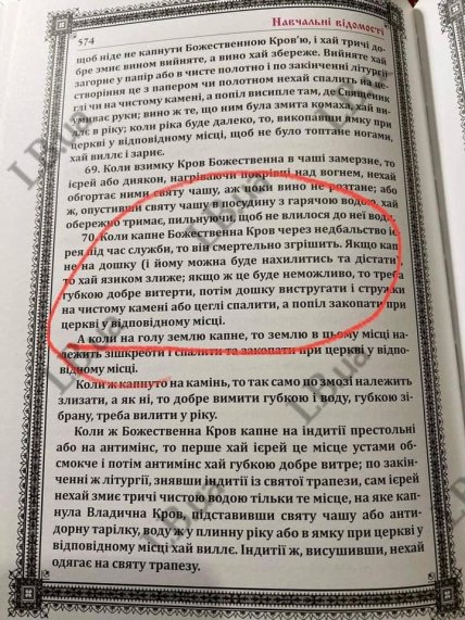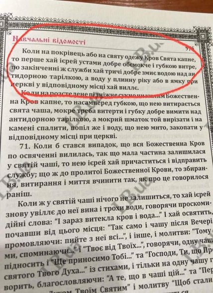 Журналистка также нашла церковные инструкции, которые гласят, что если пролилось на пол, то доску необходимо вырезать и сжечь, а пепел высыпать в реку. Если же вино пролилось на одежду, то священник должен всосать его губами, а затем сжечь одежду.