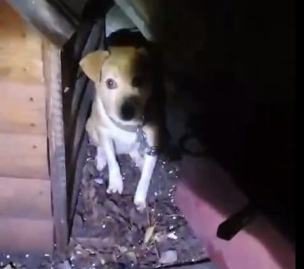 Единственным выжившим существом на месте удара оказался щеночек, который прятался возле будки и, вероятно, благодаря этому уцелел.