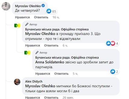 На это в Бучанском горсовете сообщили, что отчитались о полученных вещах.