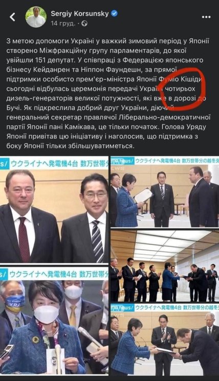 Так пользователи обратили внимание, что в оригинальном посте посла Украины в Токио Сергея Корсунского было указано, что правительство Японии передает городу четыре мощных генератора, однако позже пресс-служба городского совета сообщила, что получила только три.