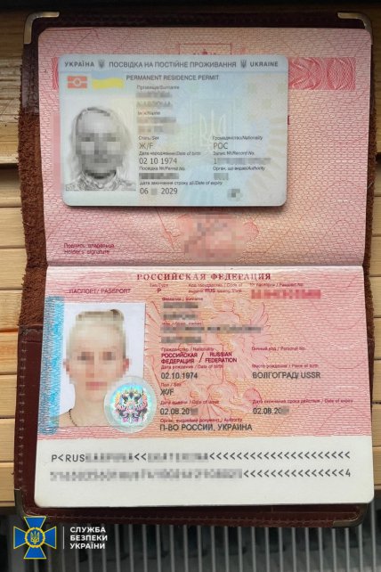 По месту жительства женщины были проведены обыски. Правоохранители обнаружили у нее российские паспорта и запрещенную символику.