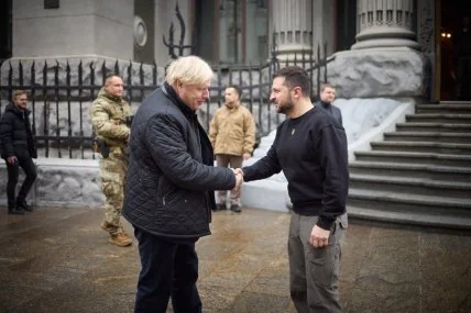 В воскресенье, 22 января, президент Украины Владимир Зеленский провел встречу с экс-премьером Великобритании Борисом Джонсоном, который прибыл в Киев с визитом, а также успел побывать в Буче и Бородянке.