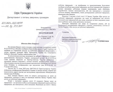 "Письмо от 13 января 2023 года… премьер-министр Украины Д. Шмыгаль проинформировал президента Украины и автора петиции, в частности, о недостаточности оснований для применения персональных ограничительных мер в отношении Ю. Бойко", — сказано в документе.