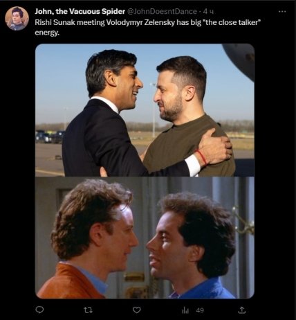 Визит президента Украины Владимира Зеленского в Великобританию и встреча с премьер-министром Соединенного королевства Риши Сунаком вызвала настоящую волну мемов в социальных сетях.