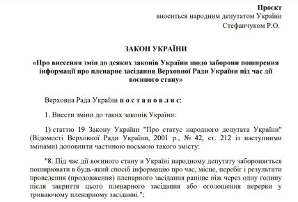 "В Верховной Раде зарегистрировали законопроект против "Гончаренко-Железняка". А если серьезно: депутатов хотят наказывать за оперативные новости из Верховной Рады", — говорится в сообщении.