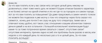 Подорожание повлекло за собой шквал критики в адрес оператора со стороны пользователей. Клиенты компании в соцсетях возмущаются: как можно повышать стоимость услуги, если порой у людей отсутствует покрытие, периодически нет доступа к этим самим услугам — связи, интернету, sms.