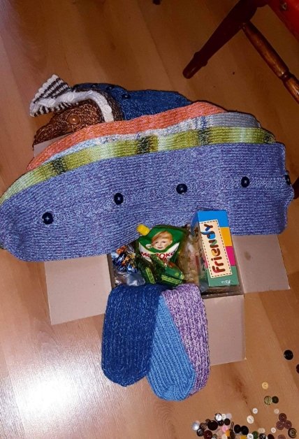 Вяжет под фонариком, в каждую посылку кладет вкусности