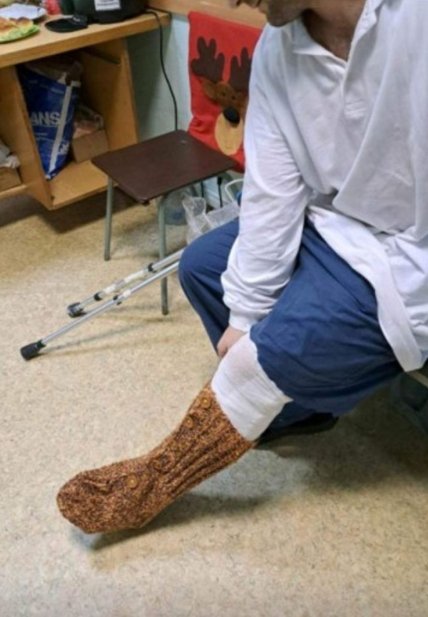 Сегодня более 20 таких необычных носков от Марии согревают ноги раненых защитников. Первую партию жительница Переяславщины направила в Сумы. Передала такие изделия и в днепровскую больницу.