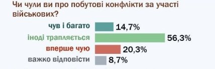 Более половины украинцев считают, что государство прилагает недостаточно сил для предотвращения участившихся в последнее время бытовых конфликтов с участием военных. Например, когда в Хмельницком священники УПЦ МП в храме избили солдата, или когда в Буковеле обругали военного, приехавшего на оздоровление из Бахмута.