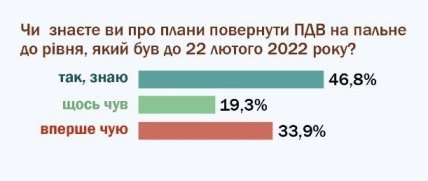 На вопрос анкеты, знают ли респонденты о планах вернуть НДС до уровня, который был до 22 февраля 2022 года, утвердительно ответили 46,8 процента опрошенных, что-то слышали — 19,3%; вообще не знали – 33,9%.