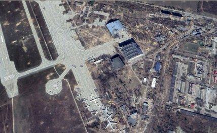 Также со спутника можно теперь увидеть разрушения в аэропорту Гостомеля.