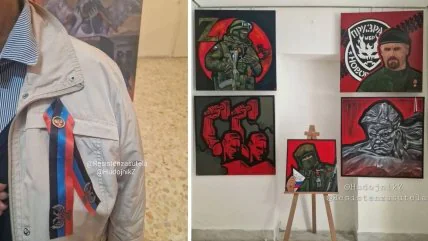 Авторами выставки выступили очень колоритные персоны. Это русская и итальянская художницы. Первая - россиянка Елена Бегма. Ее Telegram-канал так и называется – "Художник Z патриот". Елена рисует "героические" картины о ЧВК "Вагнера" и российской армии, активно пользуясь Z-символикой.