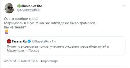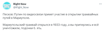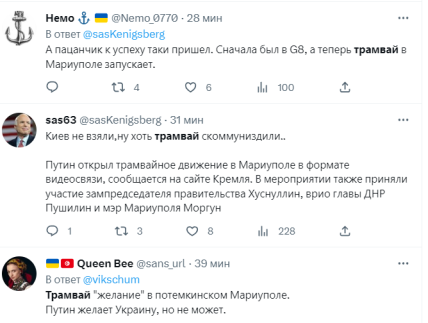 По словам путина, он обсуждал проблемы временно оккупированного россией Мариуполя с профильными чиновниками. Одной из них было возобновление трамвайного движения.