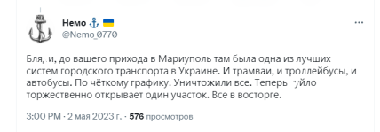 На фоне того, что по велению российского президента сделали с Мариуполем его военные, особо цинично звучат поздравления с его стороны.