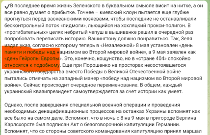 А в прокремлевских Telegram-помойках окрестили 9 мая "Днем Гейропы" и жалуются, что это "кощунство":