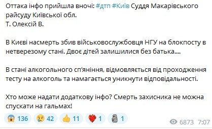 Источник утверждает, что за рулем находился судья Макаровского райсуда Киевской Области Алексей Тандыр.
