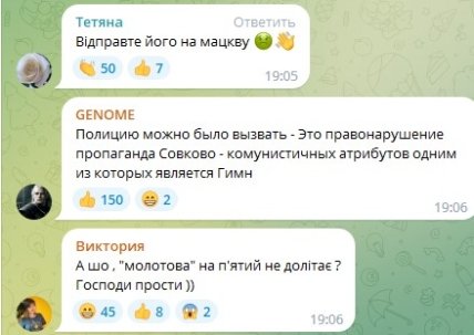 В комментариях люди крайне возмущены поведением провокатора. Многие попытались выяснить, где именно живет нарушитель закона, чтобы провести с ним личную "беседу". Также ему предложили поехать туда, где этот гимн любят и ценят до сих пор — в россию.