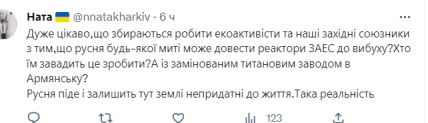 Стоит отметить, что митинг, в котором приняла участие Грета Тунберг, был призван обратить внимание на совершенное захватчиками преступление и не допустить избежания их наказание на техногенное бедствие, поскольку нулевая реакция ООН на это происшествие просто шокировало Украину.