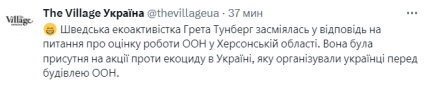 Известная шведская экоактивистка Грета Тунберг приняла участие в украинской акции под представительством ООН в немецком Бонне и дала свой комментарий насчет "работы" организации на Херсонщине, где оккупантами был совершен подрыв ГЭС.
